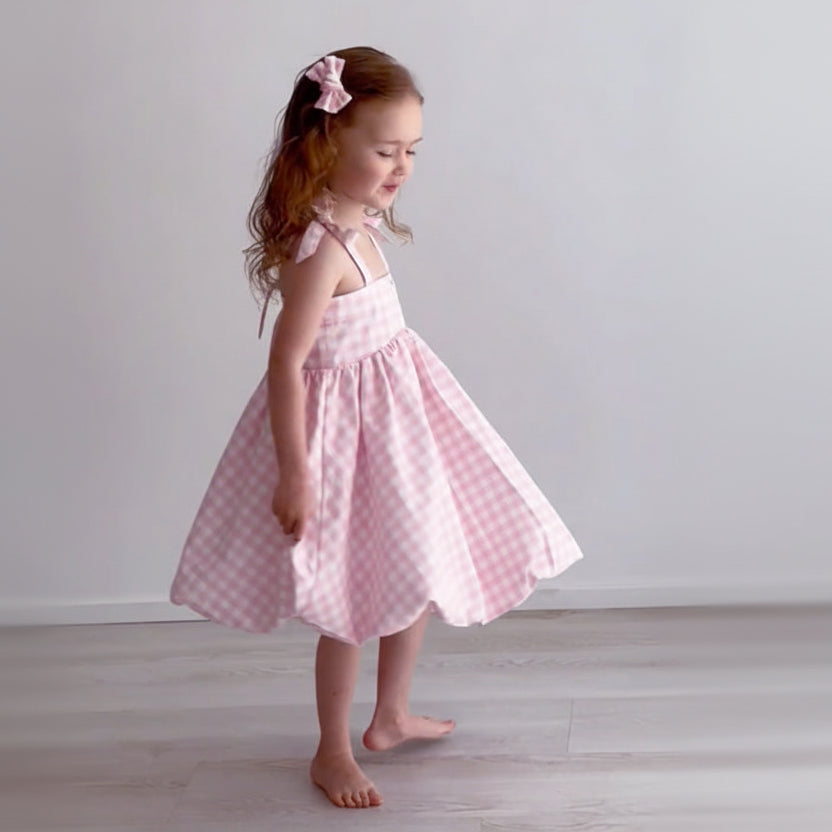 Girls Cotton Dress (2–5 Years) – Pink Gingham | Bubble Hem