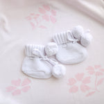 Our gender neutral Knitted Baby Booties Bright White with pom poms are made from 100% cotton. Winter & summer wear.