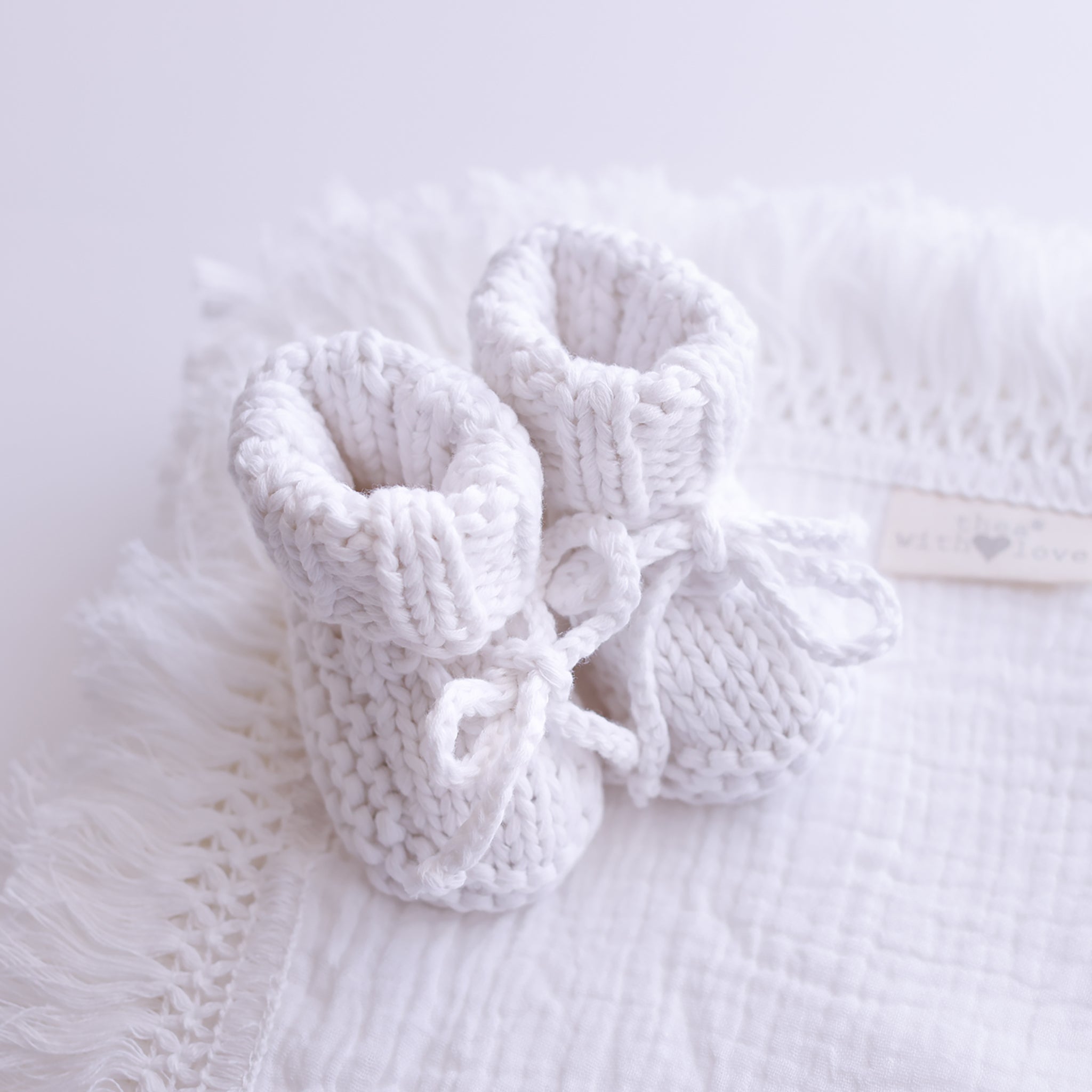 As our booties are hand knitted and not machine knitted and there are imperfections in the knitting - we feel this adds to the unique beauty of our booties.