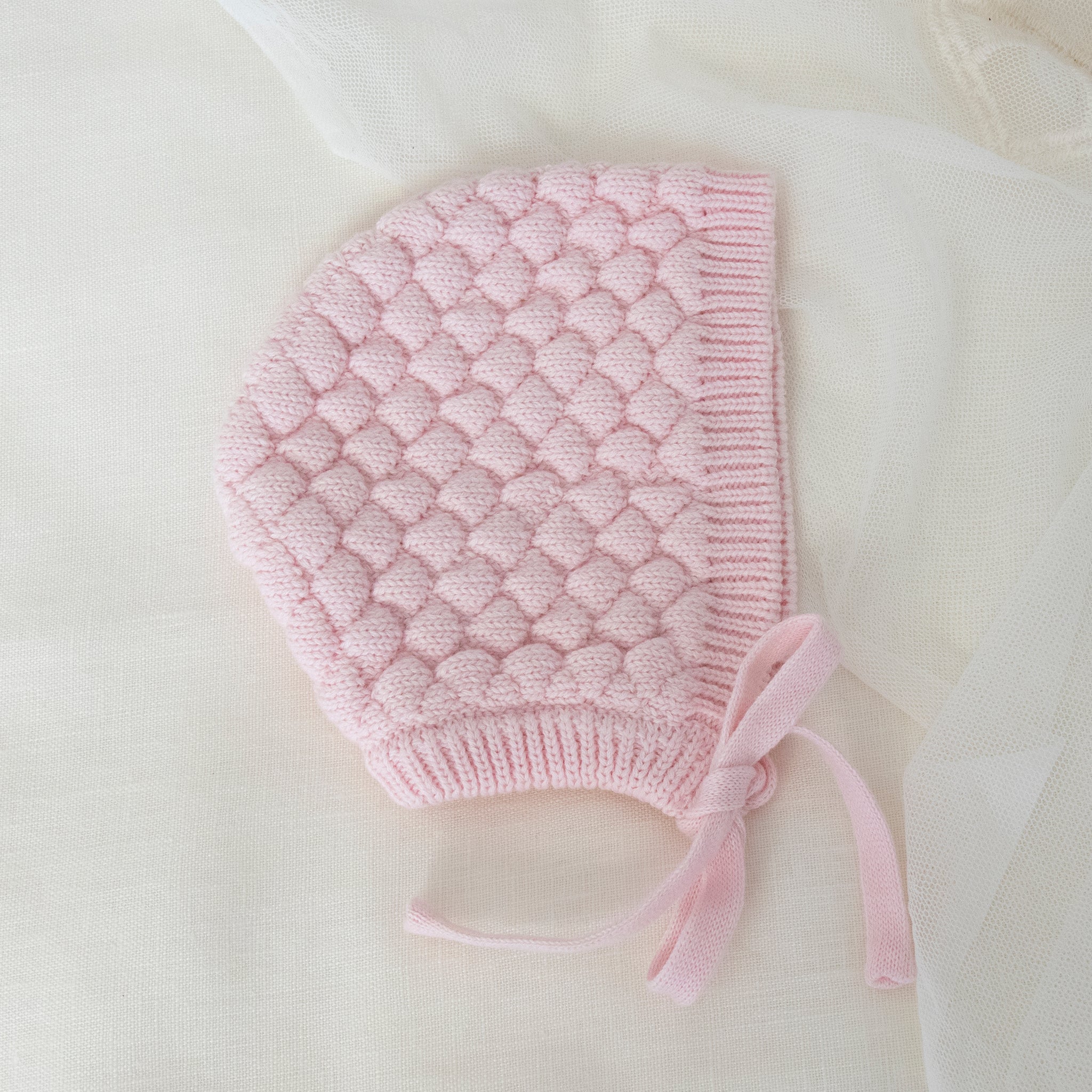 Baby Bonnet - Heirloom Cotton Knit Pretty Pink