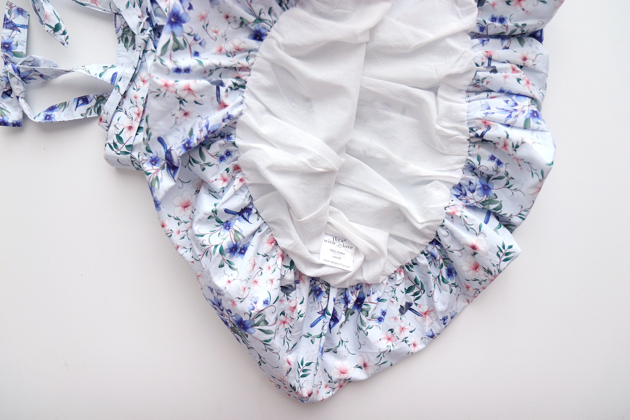 Our Bubble Hem Dress in Blue Fairy Wren is crafted from a smooth, tightly-woven cotton with a soft cotton lining for all-day comfort. The bouncy bubble hem gives that irresistible swirl — perfect for twirling, giggling, and making memories.